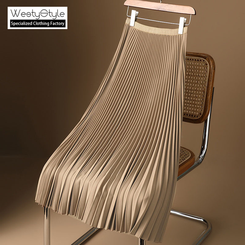 2025 faldas plisadas de satén de gama alta de verano para mujer de talla grande de moda de Color sólido Casual Natural antibacteriano hasta el tobillo