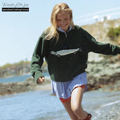 מערב 2025 קיץ אמריקאי רטרו אירופאי מזדמנים בסגנון קוריאני סוודר בסגנון חופשי רופף דפוס בעלי חיים סרוג הקדמי לוגו חוצה גבולות